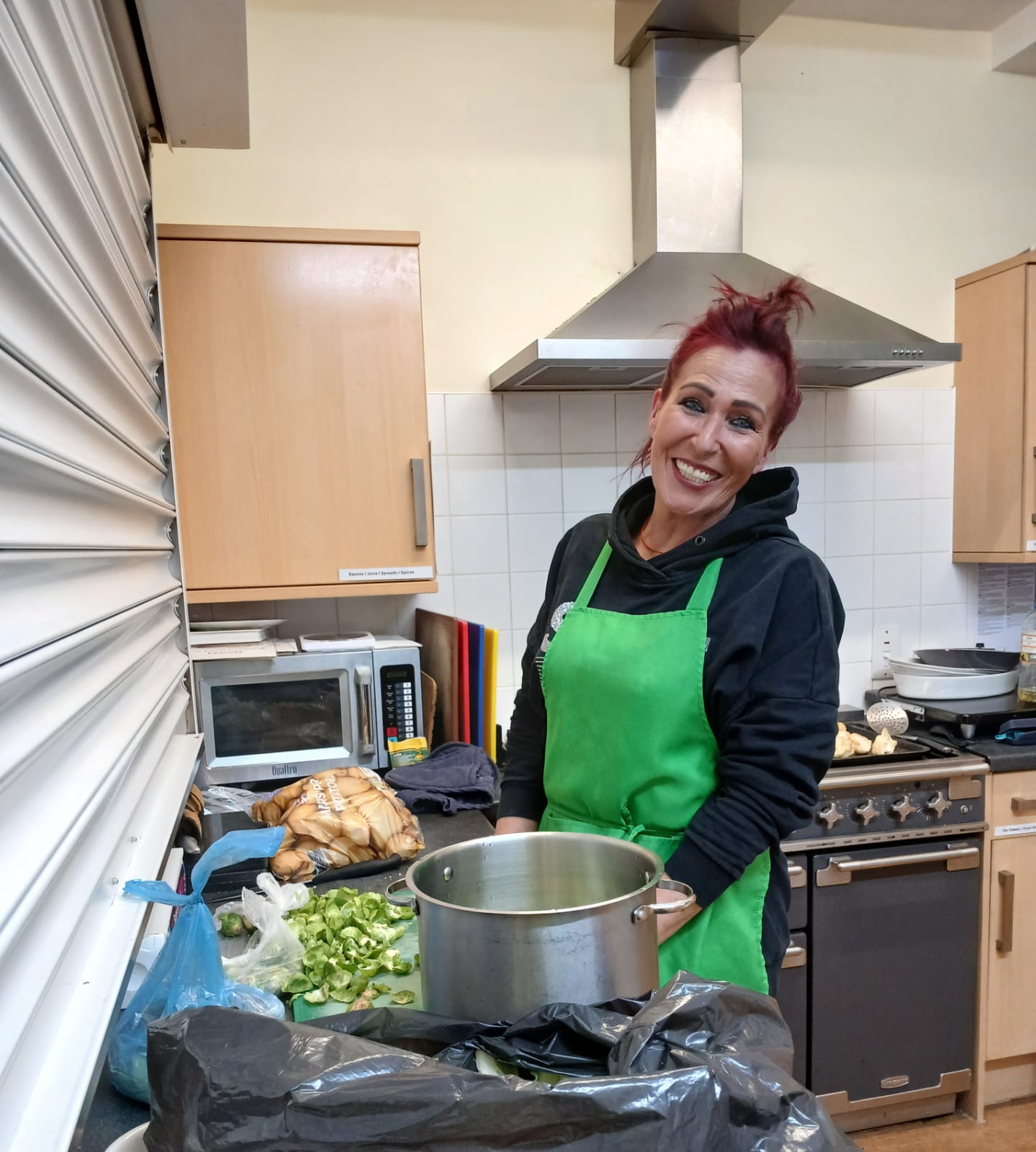 Thank you to everyone who demonstrated such kindness and goodwill to our clients over Christmas. Our long-serving relief worker, Sue, pictured here, cooked Christmas lunch single-handed (she wouldn’t have it any other way!) with veg supplied by St Nicolas in Bookham and turkey funded by the staff team at Wates who also provided groceries and gifts for our clients, as did our corporate supporters, KBR.  The students at St John’s School, Leatherhead and Hannah and Tina from SOS also brought us gifts for the clients and  St John’s School supplied a real (impressively non-drop!) Christmas tree. Many others made financial gifts on our Givey site or, like the Ahmadiyya Womens’ Association, called by with gifts and donations. LPC (Leatherhead Parish Church), who are supporting us this year, remembered our staff team with their ‘Bags of Kindness’.  Many thanks to you all with our very best wishes for a happy and hopeful New Year as we continue to assist those in our community who find themselves in crisis and in need of our support.
