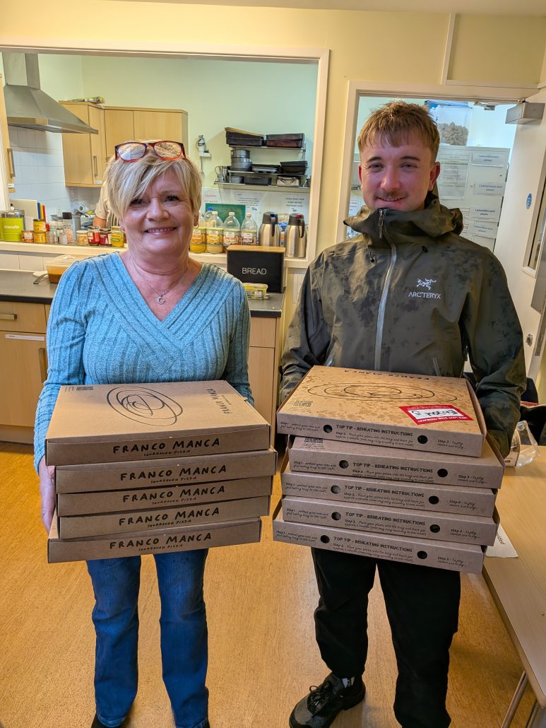 Robert Parsons ran an incredible 42k in the shape of a pizza slice during the Franco Manca Map My Pizza Run to donate as many pizzas as possible to our clients. Wonderfully Franco Manca donated 10 pizzas kindly delivered by Rob, pictured with Support Worker, Tina.